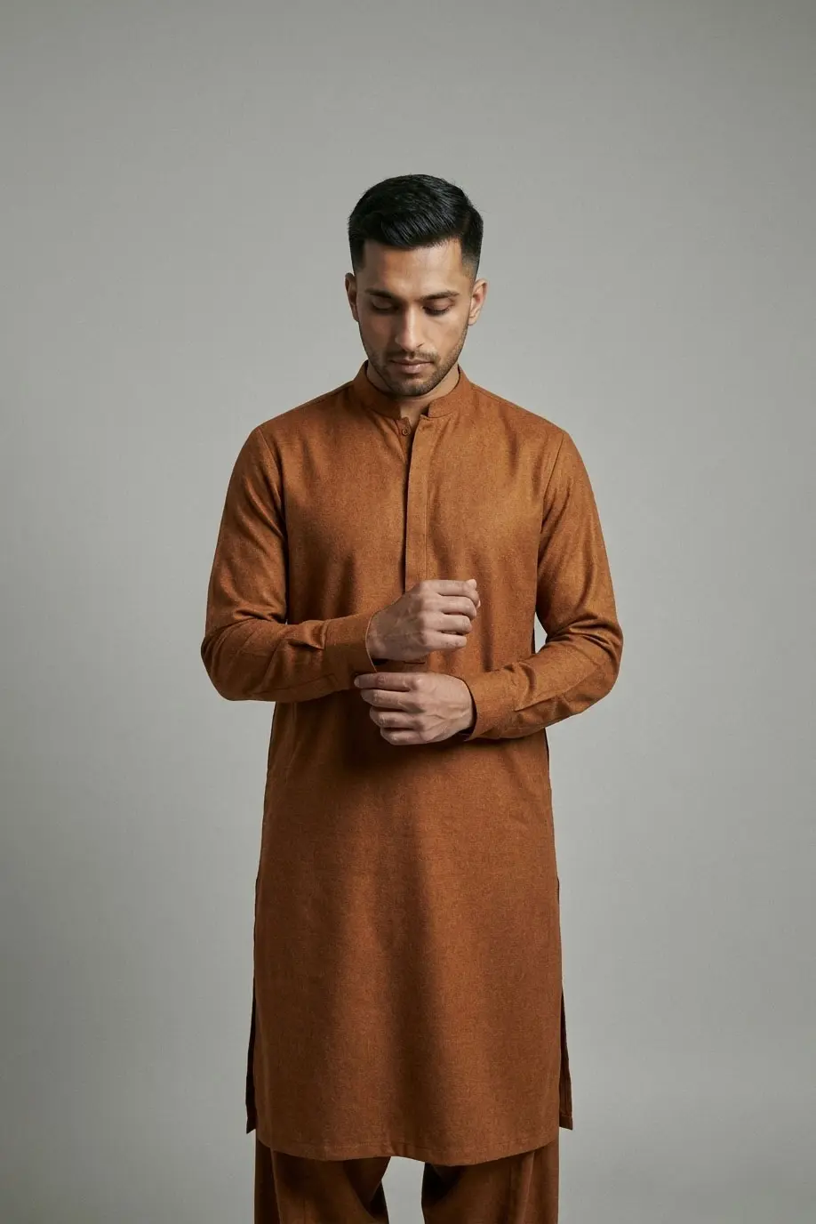👔 Event Ready The ideal choice for Weddings, Eid, and formal gatherings. Its rich texture pairs perfectly with a waistcoat or shawl for a complete traditional look.