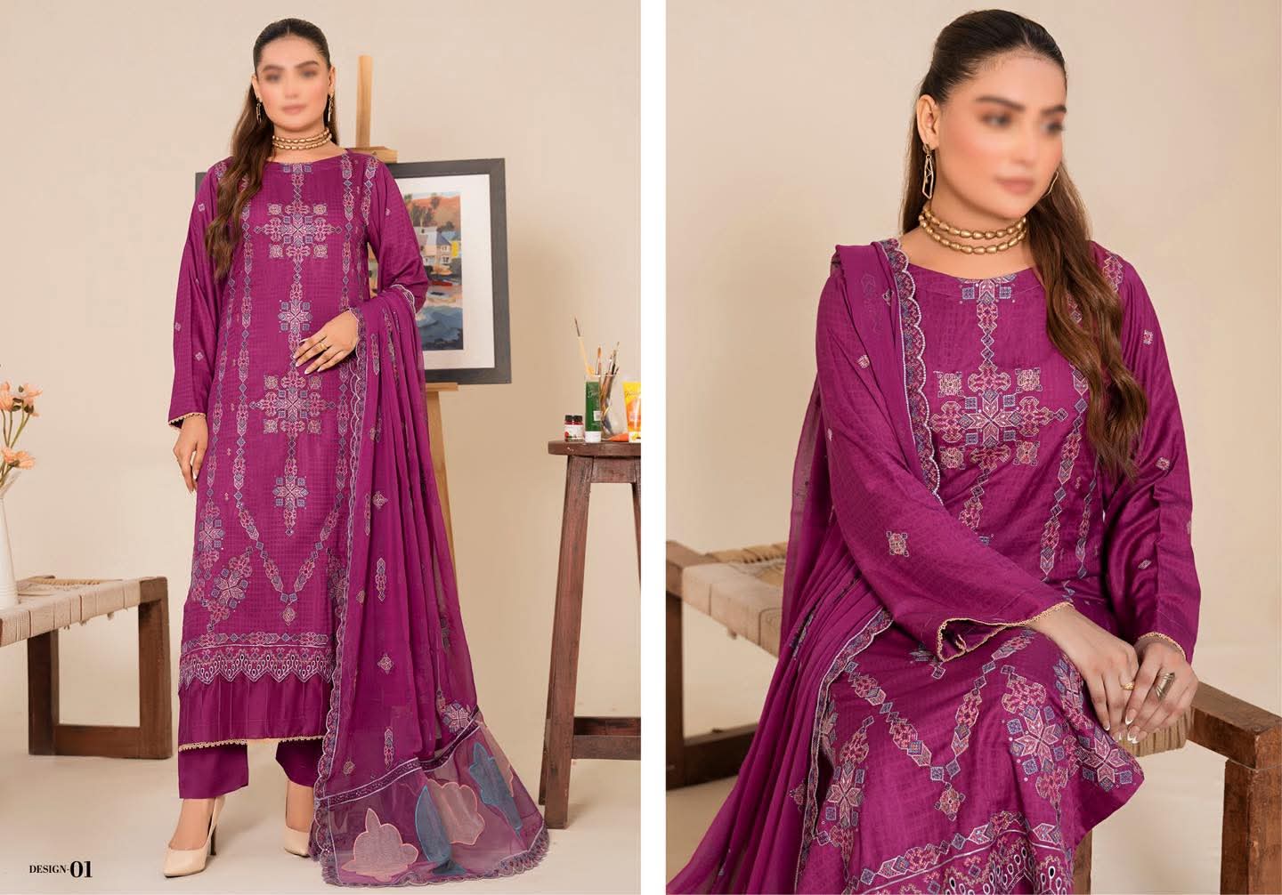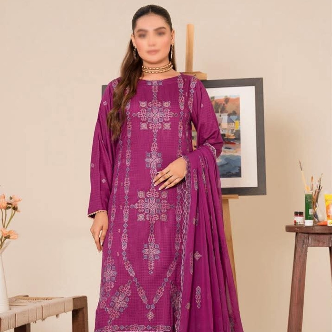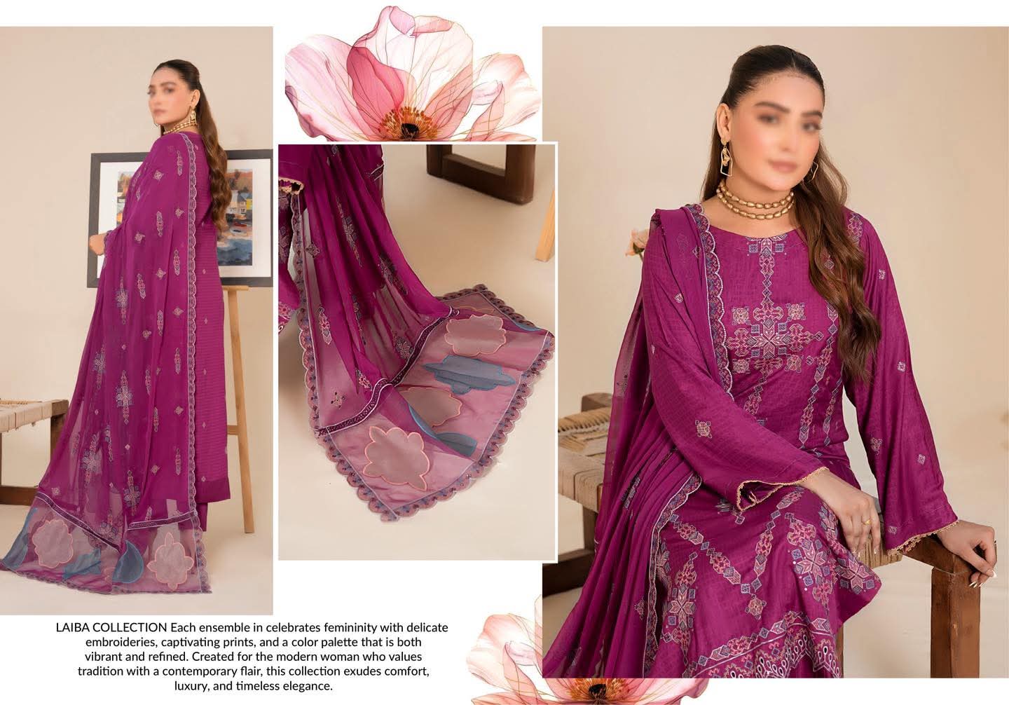 Redefine festive elegance with Laiba – a Luxury Dobby Viscose ensemble featuring a heavily embroidered front, paired with a luxury Chiffon Fancy Palu Dupatta for a graceful finish. Perfect for making every occasion unforgettable.
