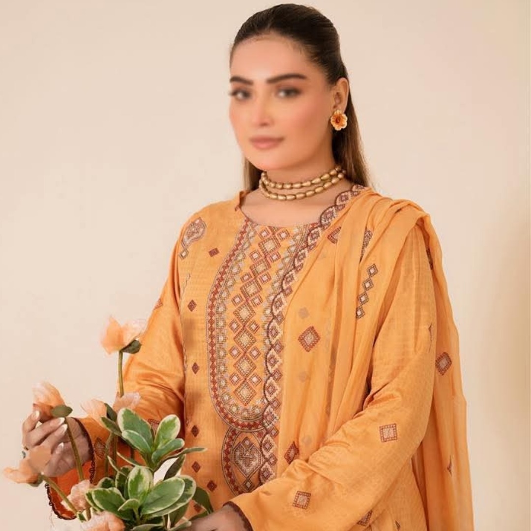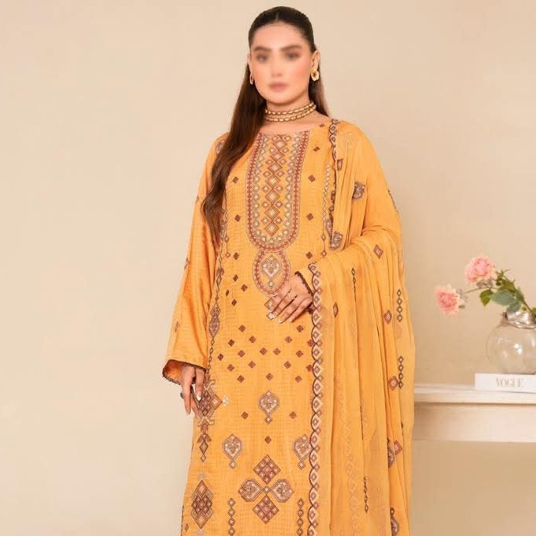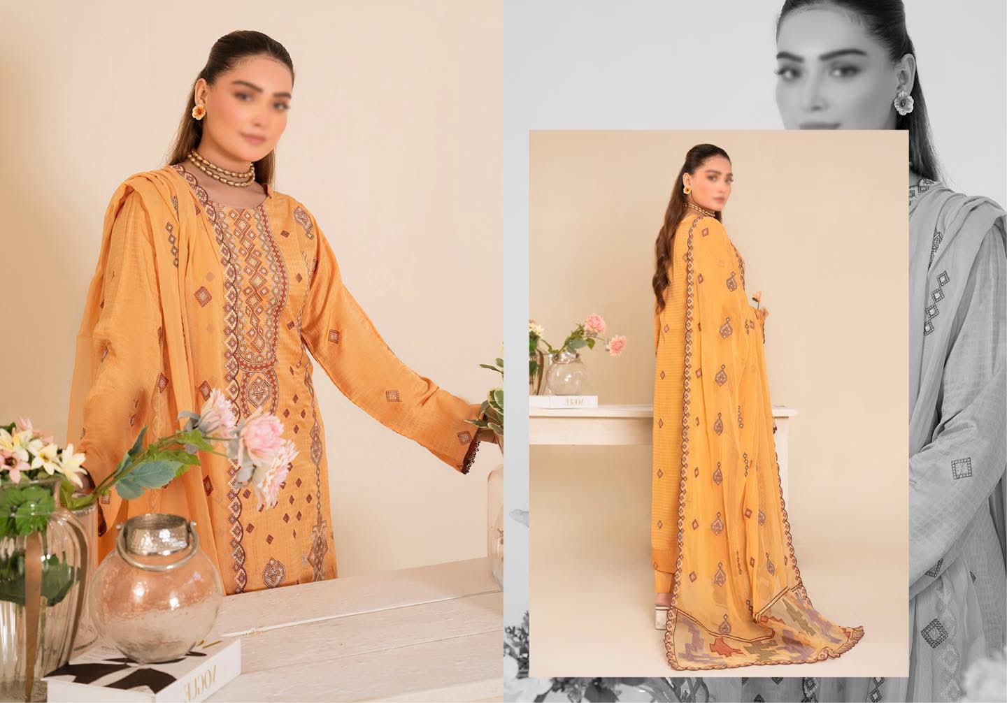 Redefine festive elegance with Laiba – a Luxury Dobby Viscose ensemble featuring a heavily embroidered front, paired with a luxury Chiffon Fancy Palu Dupatta for a graceful finish. Perfect for making every occasion unforgettable.