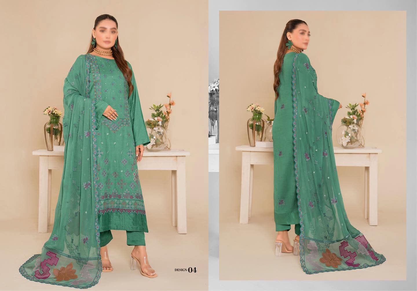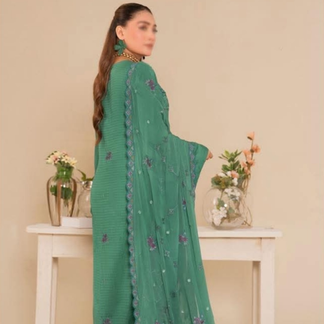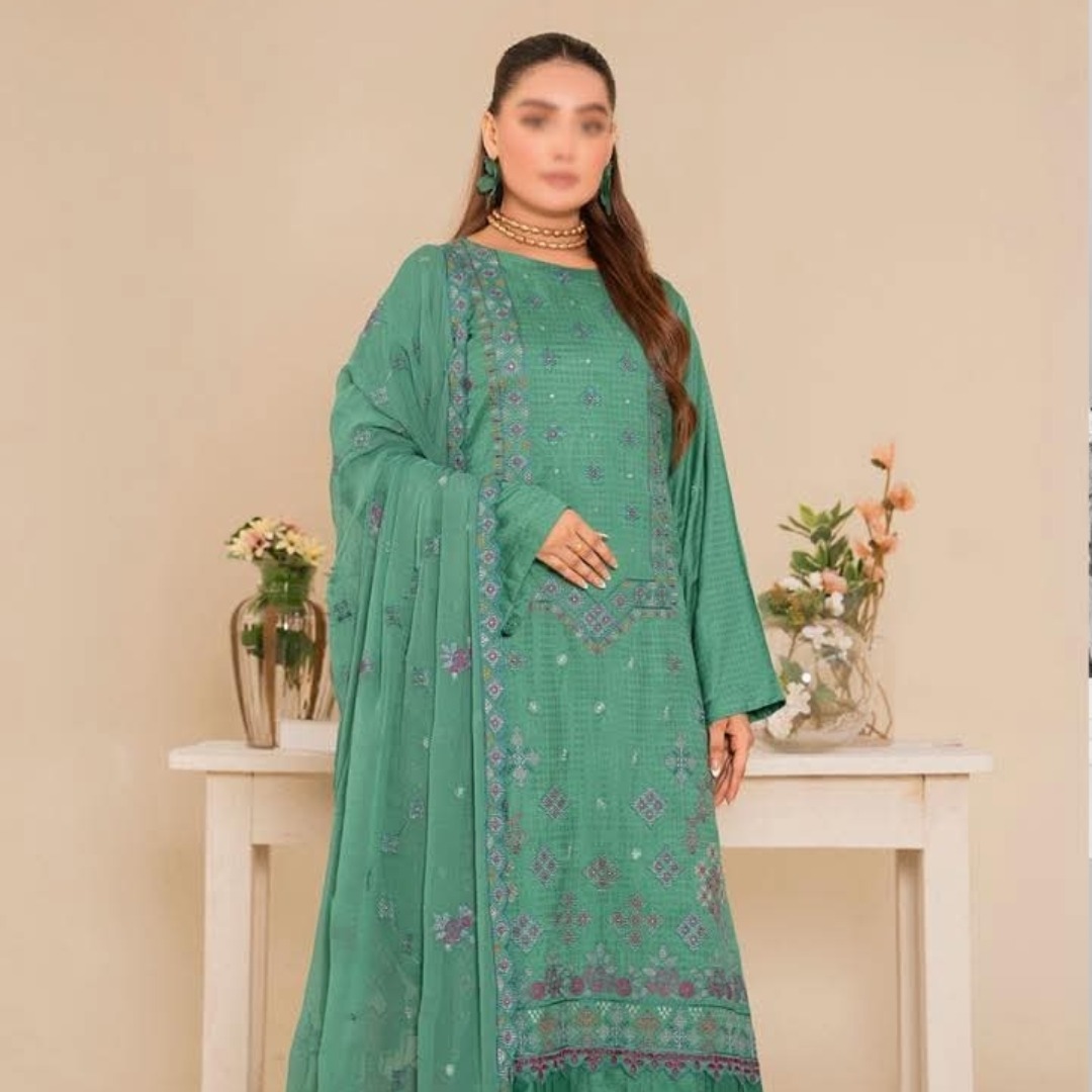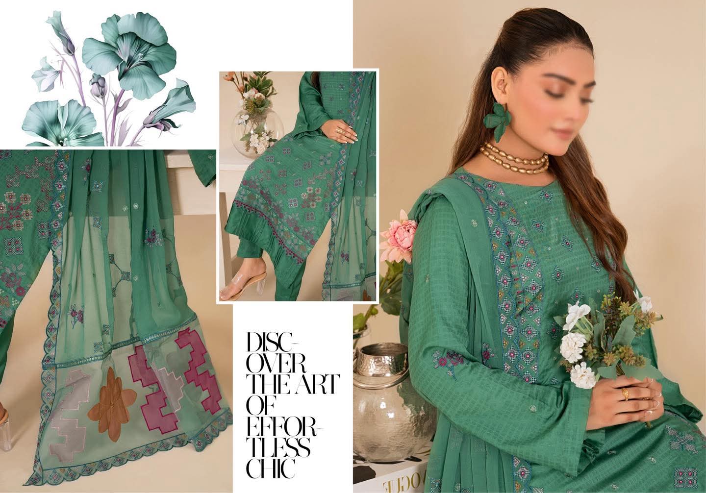 Redefine festive elegance with Laiba – a Luxury Dobby Viscose ensemble featuring a heavily embroidered front, paired with a luxury Chiffon Fancy Palu Dupatta for a graceful finish. Perfect for making every occasion unforgettable.
