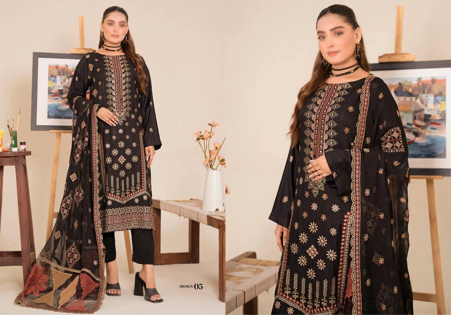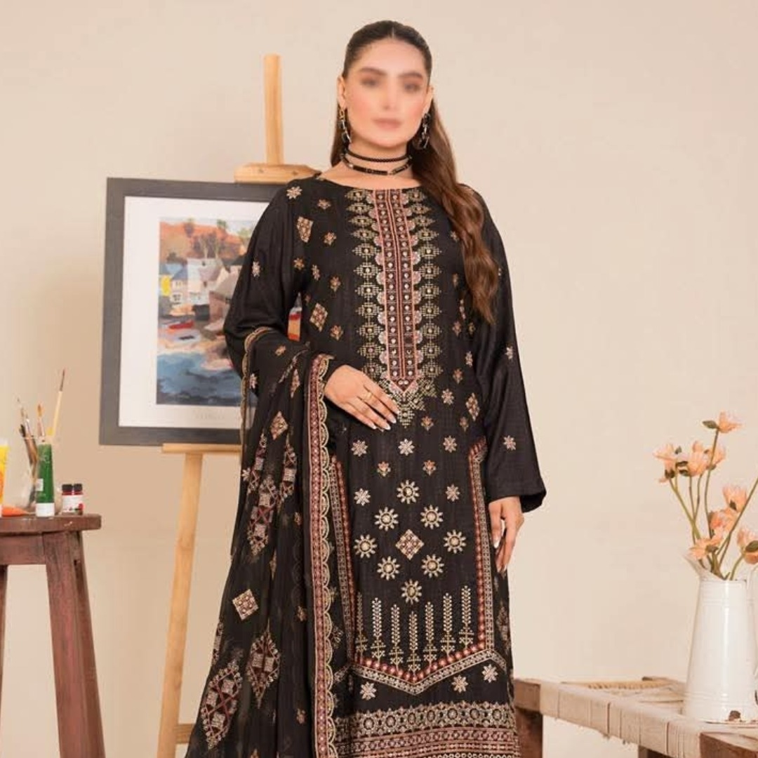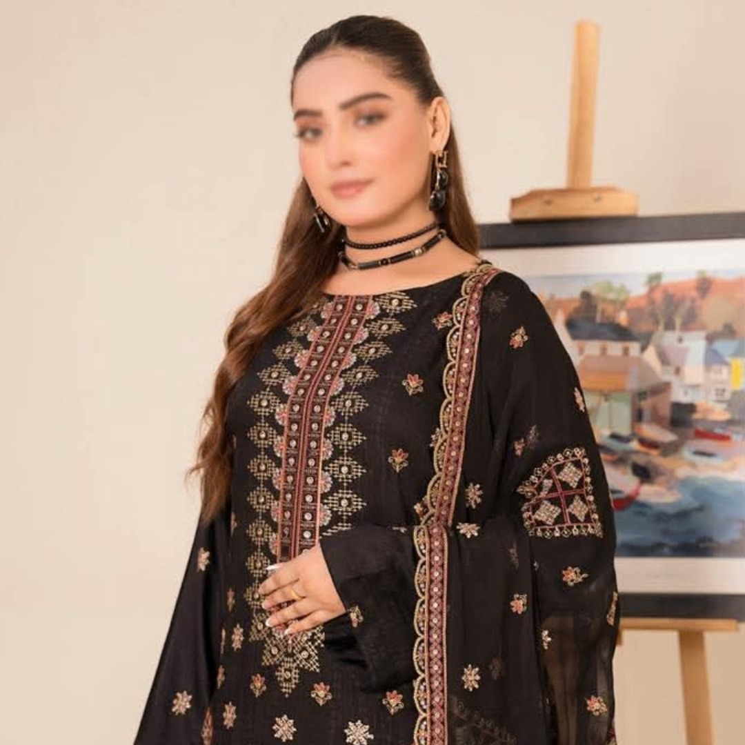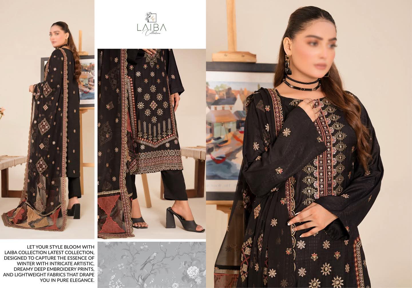 Redefine festive elegance with Laiba – a Luxury Dobby Viscose ensemble featuring a heavily embroidered front, paired with a luxury Chiffon Fancy Palu Dupatta for a graceful finish. Perfect for making every occasion unforgettable.
