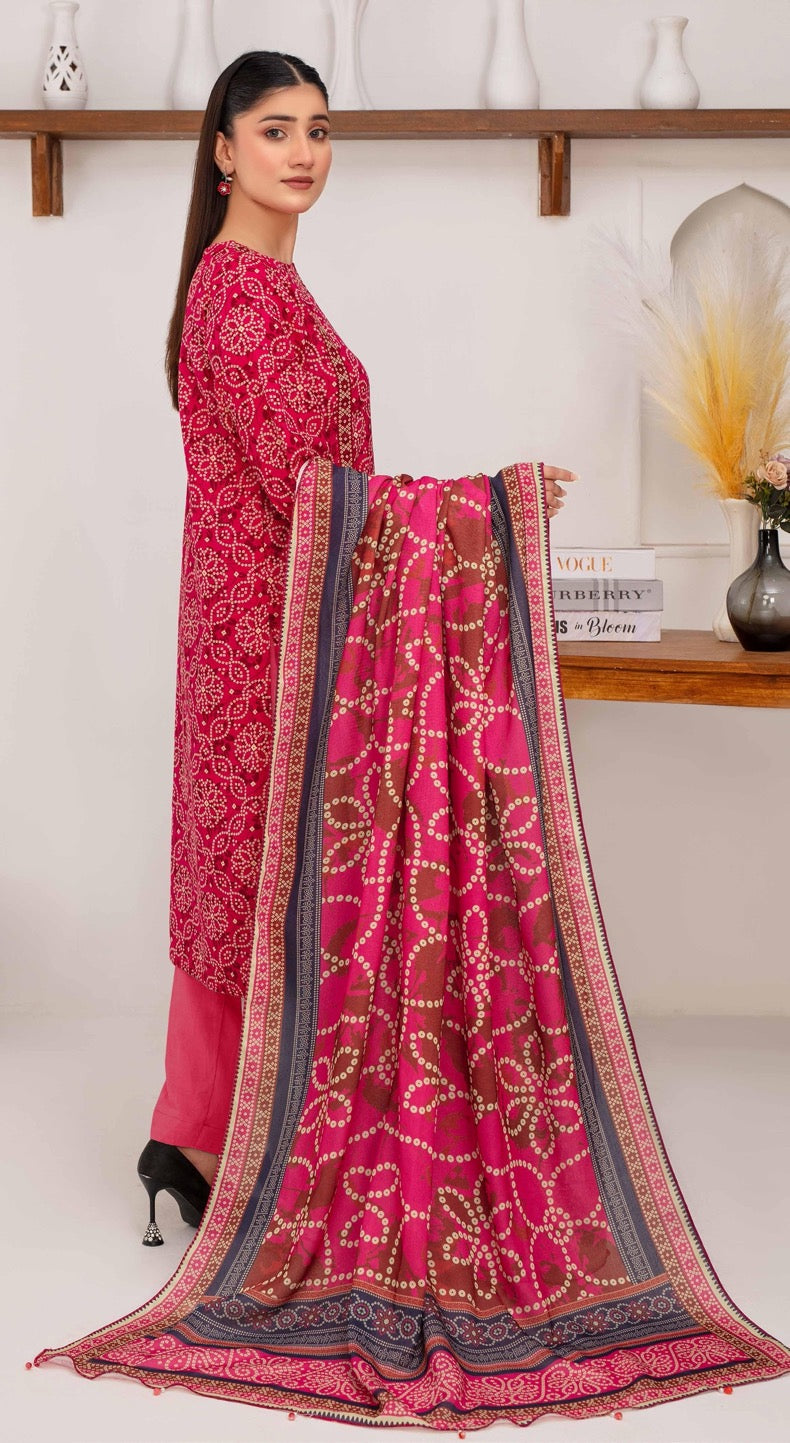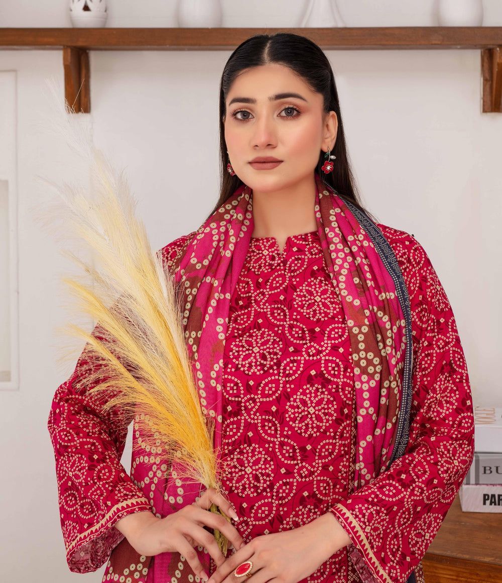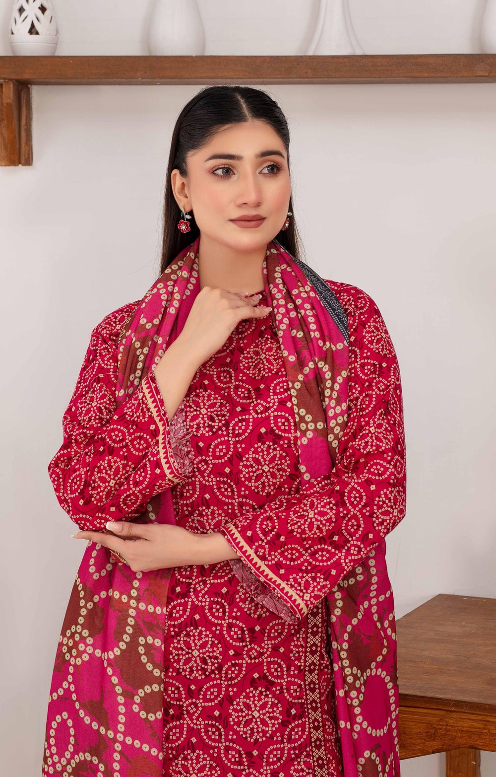 Shirt: Printed Khaddar – soft textured fabric with detailed patterns for a refined winter look.