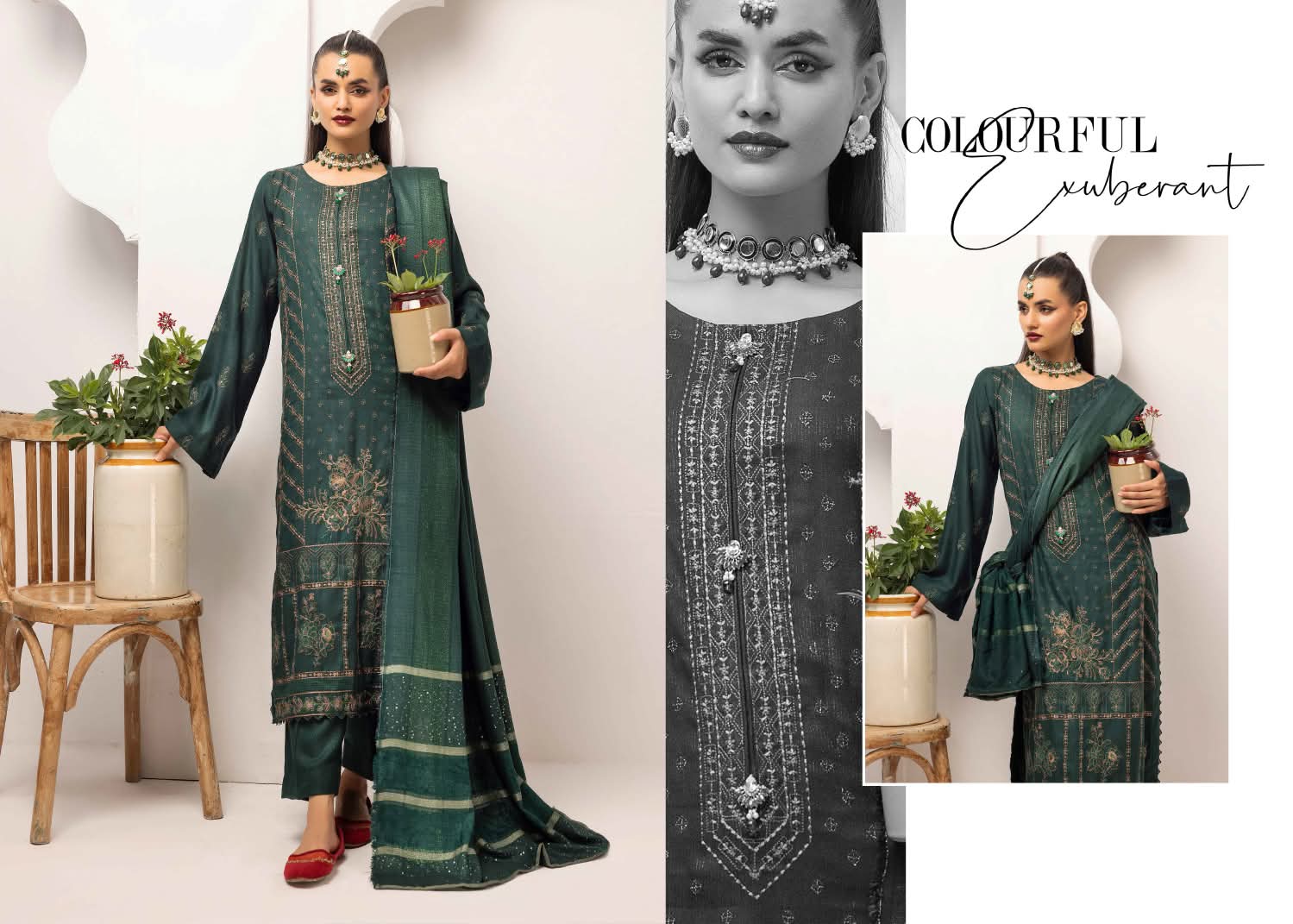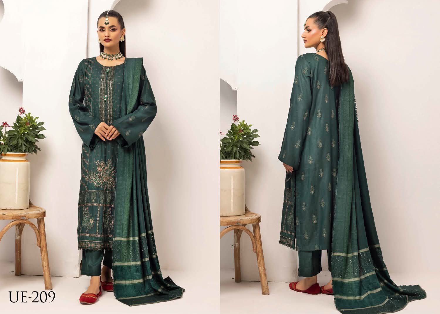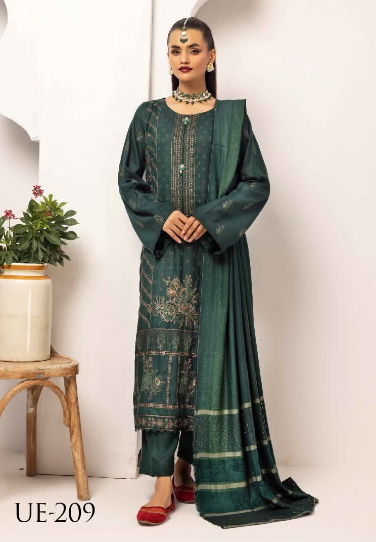 Embrace elegance with Uraan by Nur – an Embroidered Peach Leather Shirt paired with a luxurious Velvet Jacquard Shawl, designed for timeless festive sophistication.